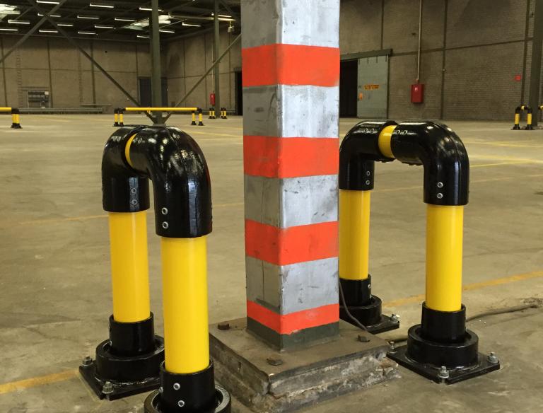 Deze SlowStop® middelzware beschermbeugel Type 2, is ons meest verkochte en toegepaste uitvoering. Ze is tweemaal sterker dan een enkele terugverende stootpaal. Ze bestaan namelijk uit twee terugverende voetconstructies met twee verbindingselementen en een of twee stalen buizen om één stalen verende beugel te maken. Deze worden het meest toegepast waar hoger risico's is met middelzware aanrijding. Dit is ideaal ter bescherming van branddeuren, kostbare productiemachines, mechanische aanslag voor heftrucks bij transportbanden, doorgangen vrij houden, benzinepomp bescherming, kolombescherming, pompeilanden.